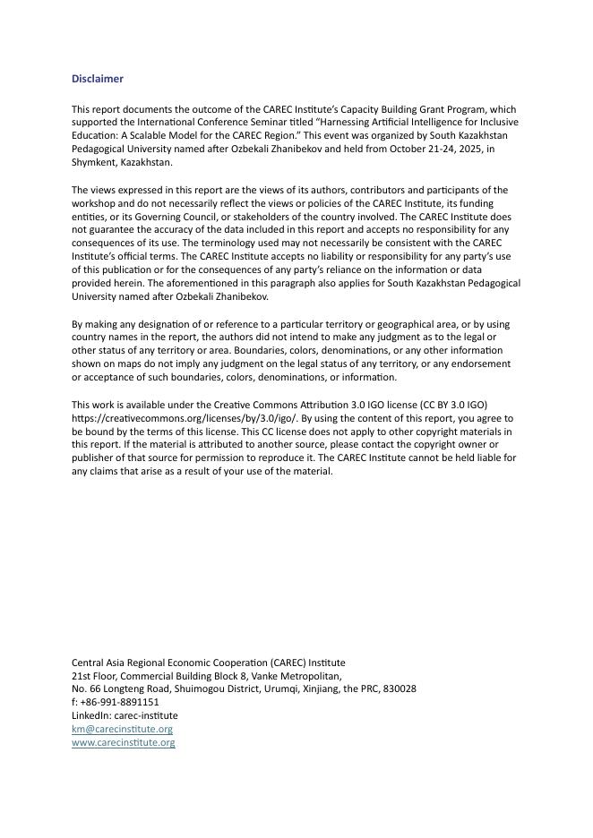 中亚学院:2026年国际会议研讨会报告-利用人工智能促进包容性教育:面向CAREC地区的可扩展模型(英文版).pdf