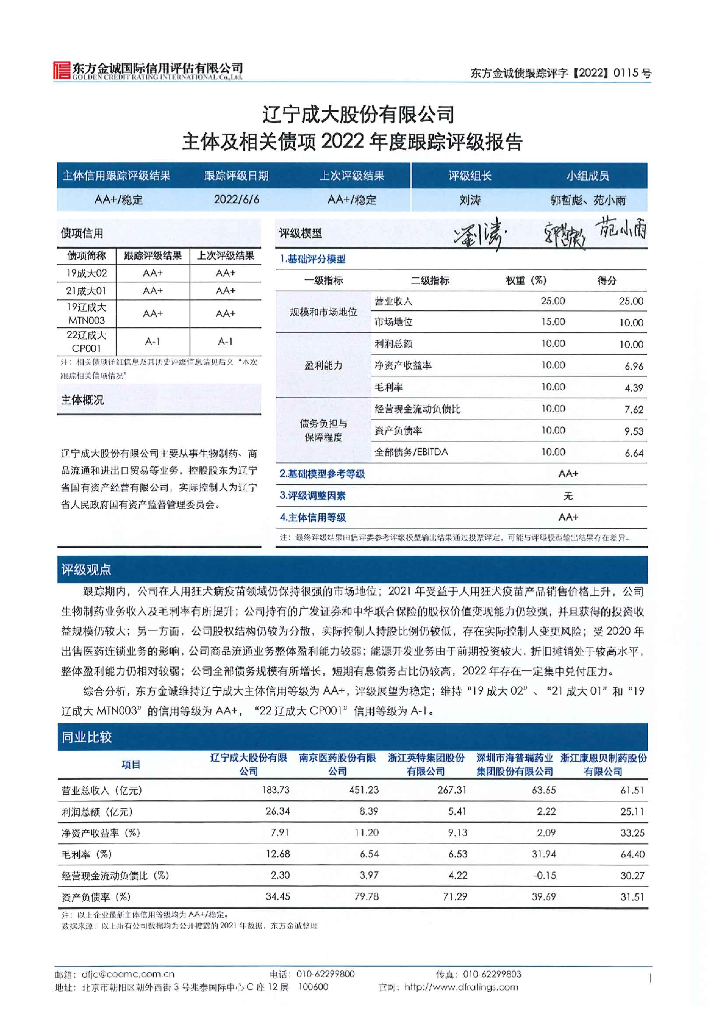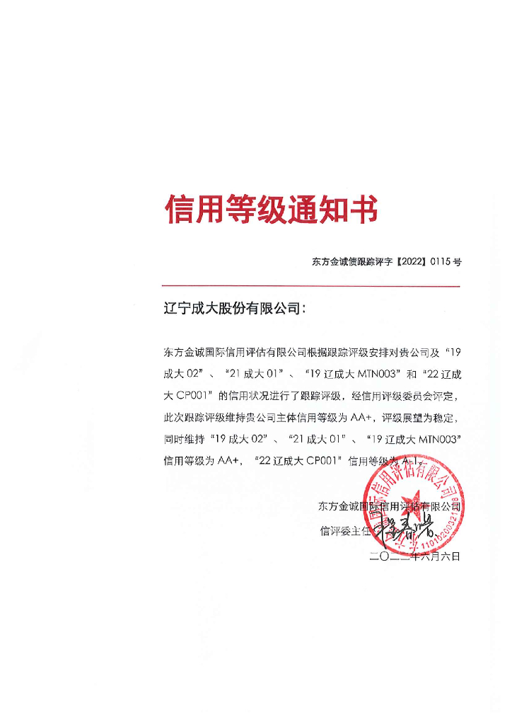 东方金诚:辽宁成大股份有限公司主体及相关债项2022年度跟踪评级报告.pdf
