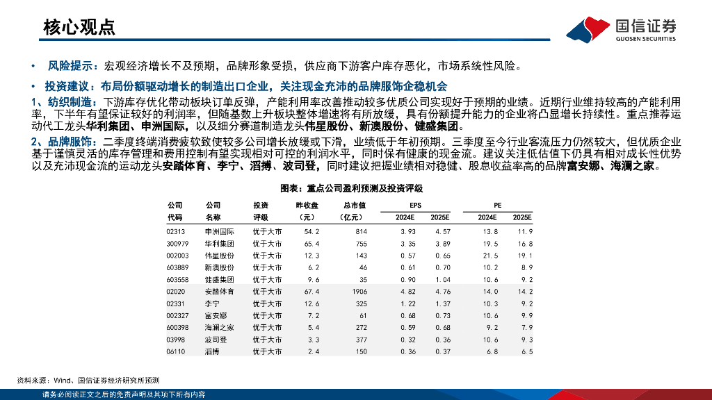 国信证券:纺织服装2024中报总结:制造出口业绩反弹,运动消费相对占优.pdf
