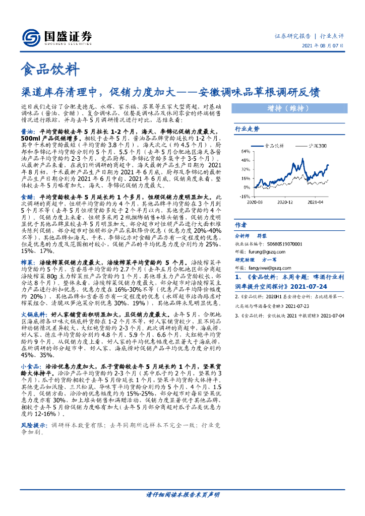 国盛证券:食品饮料行业:安徽调味品草根调研反馈:渠道库存清理中,促销力度加大.pdf