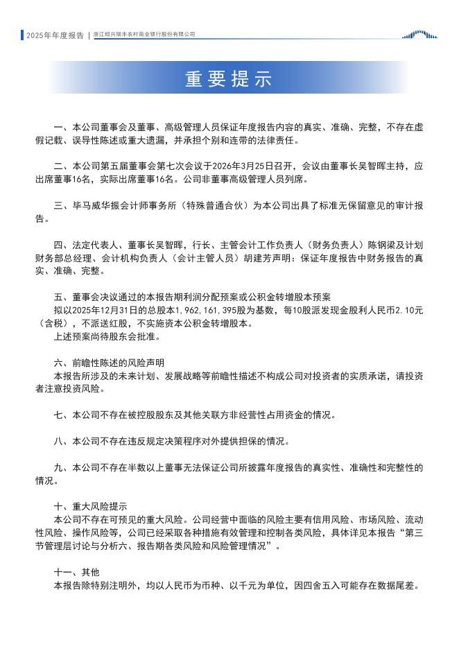 601528-瑞丰银行:浙江绍兴瑞丰农村商业银行股份有限公司2025年年度报告.pdf