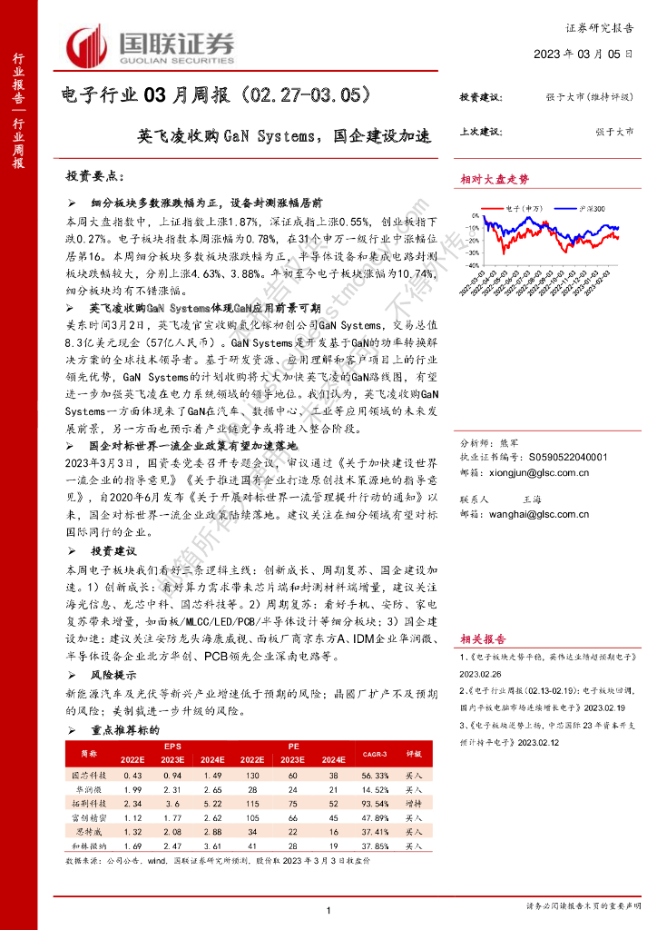国联证券:电子行业03月周报:英飞凌收购GaN Systems,国企建设加速.pdf
