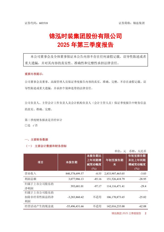 603518-锦泓集团:锦泓时装集团股份有限公司2025年第三季度报告.pdf