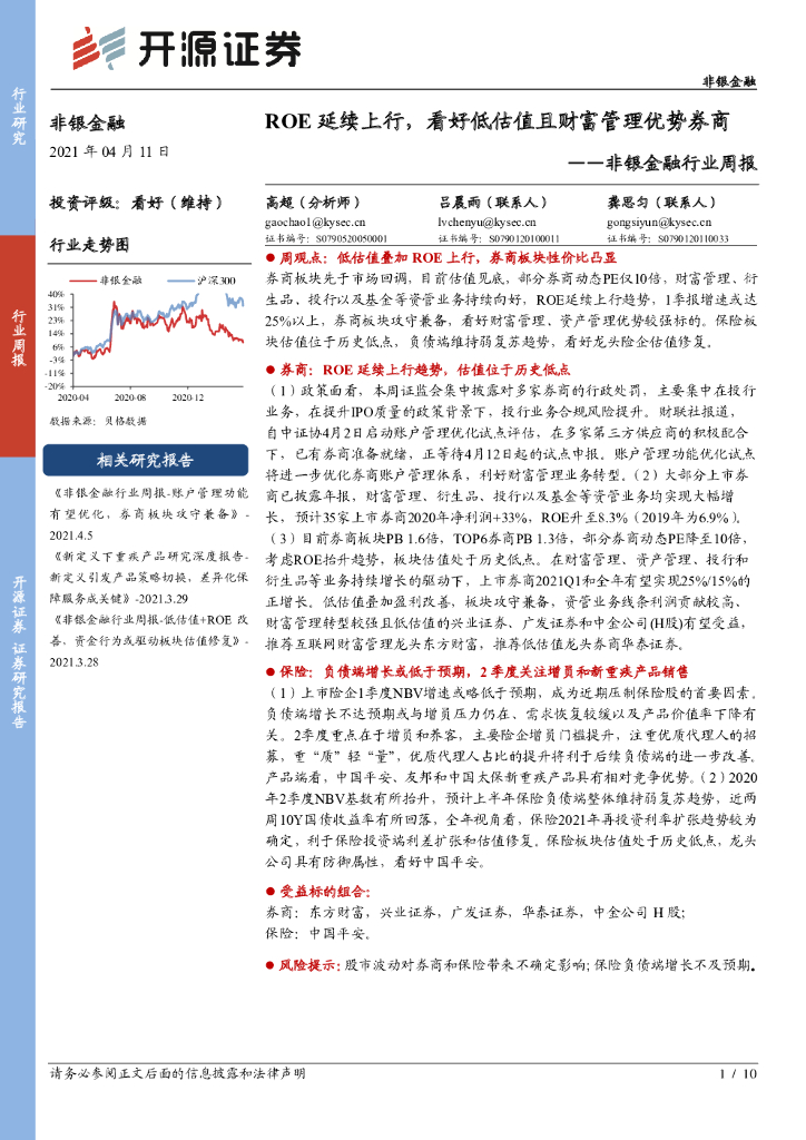 开源证券:非银金融行业周报:ROE延续上行,看好低估值且财富管理优势券商.pdf