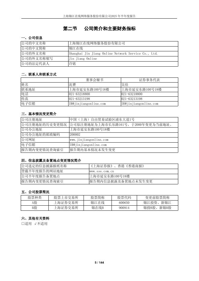600650-锦江在线:锦江在线2025年半年度报告.pdf