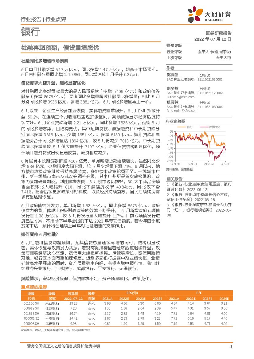 天风证券:银行:社融再超预期,信贷量增质优.pdf