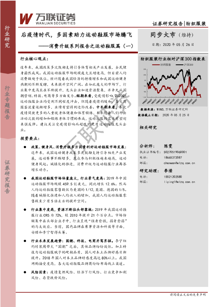 万联证券:纺织服装:消费升级系列报告之运动鞋服篇(一)-后疫情时代,多因素助力运动鞋服市场腾飞.pdf