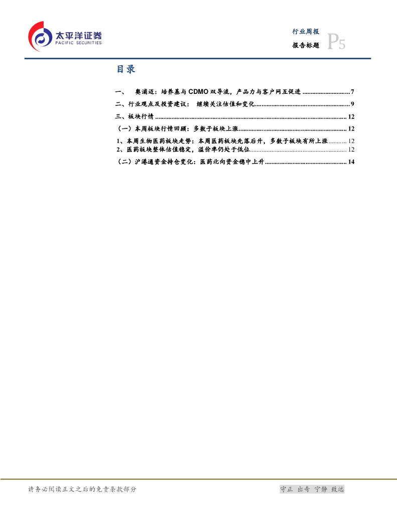 太平洋证券:医药生物行业周报:奥浦迈国内培养基领先企业,培养基与CDMO双导流,产品力与客户网互促进.pdf