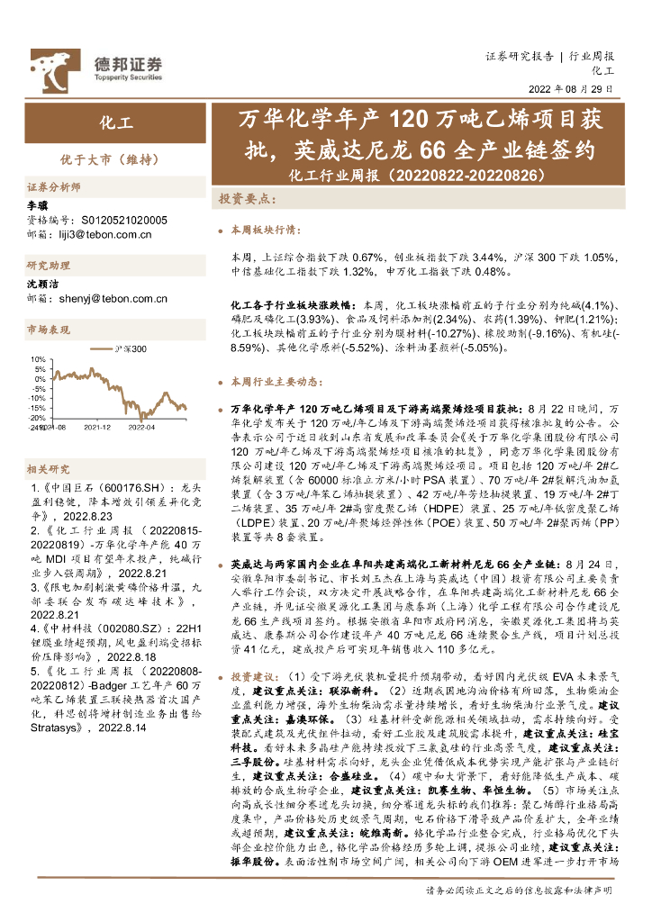 德邦证券:化工行业周报:万华化学年产120万吨乙烯项目获批,英威达尼龙66全产业链签约.pdf