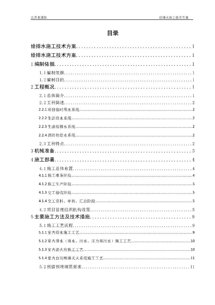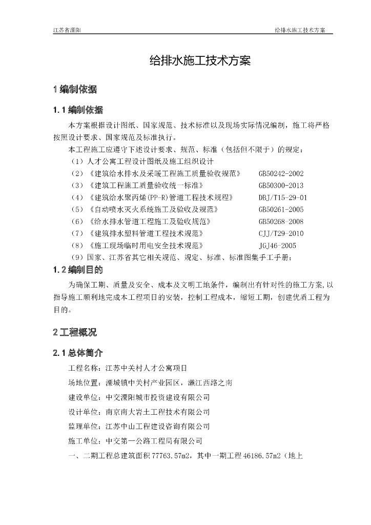 溧阳项目给排水施工技术方案.doc