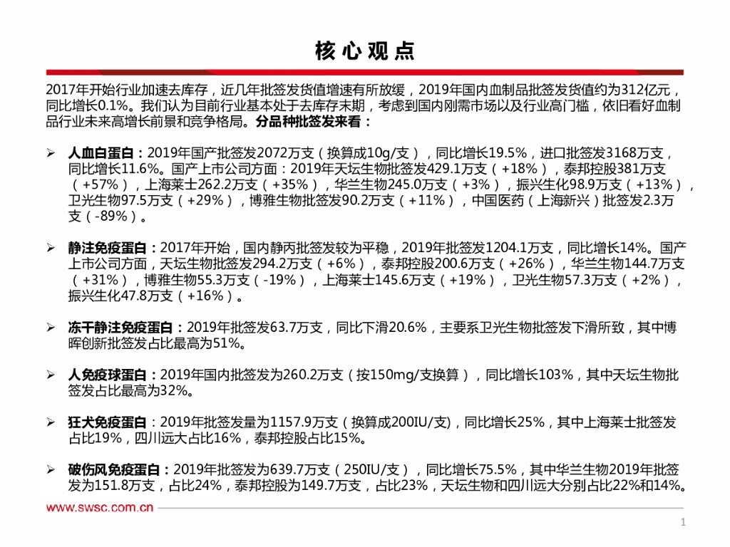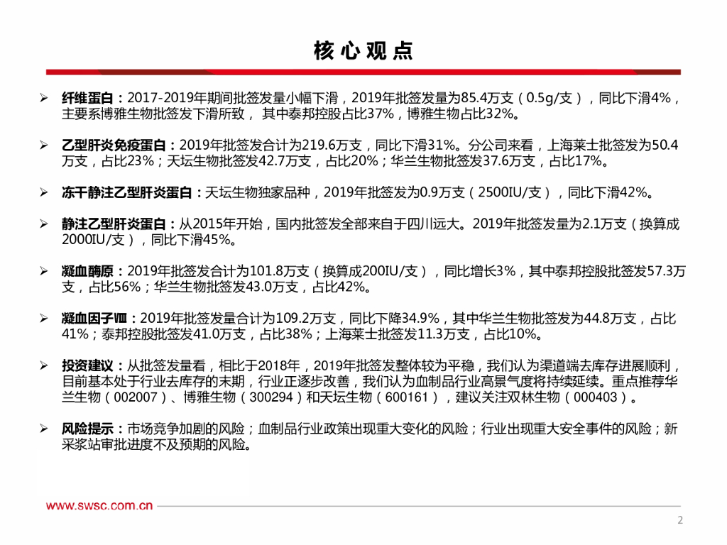 西南证券:医药行业2019年血制品批签发总结:行业加速去库存,批签发稳步提升.pdf