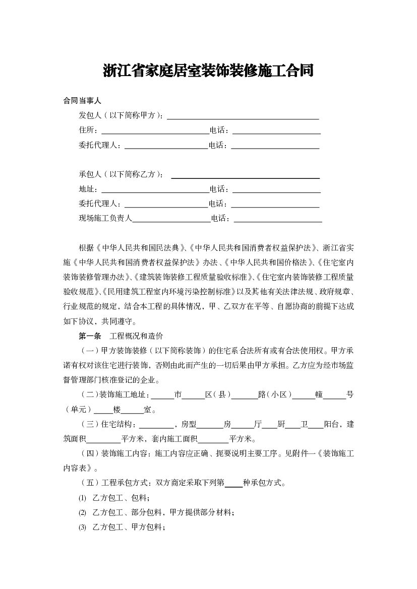 浙江省家庭居室装饰装修施工合同(示范文本)(2021版).pdf