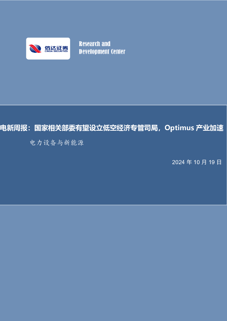 信达证券:电新周报:国家相关部委有望设立低空经济专管司局,Optimus产业加速电力设备与新能源.pdf