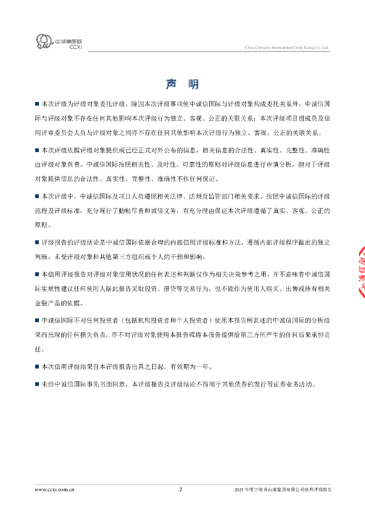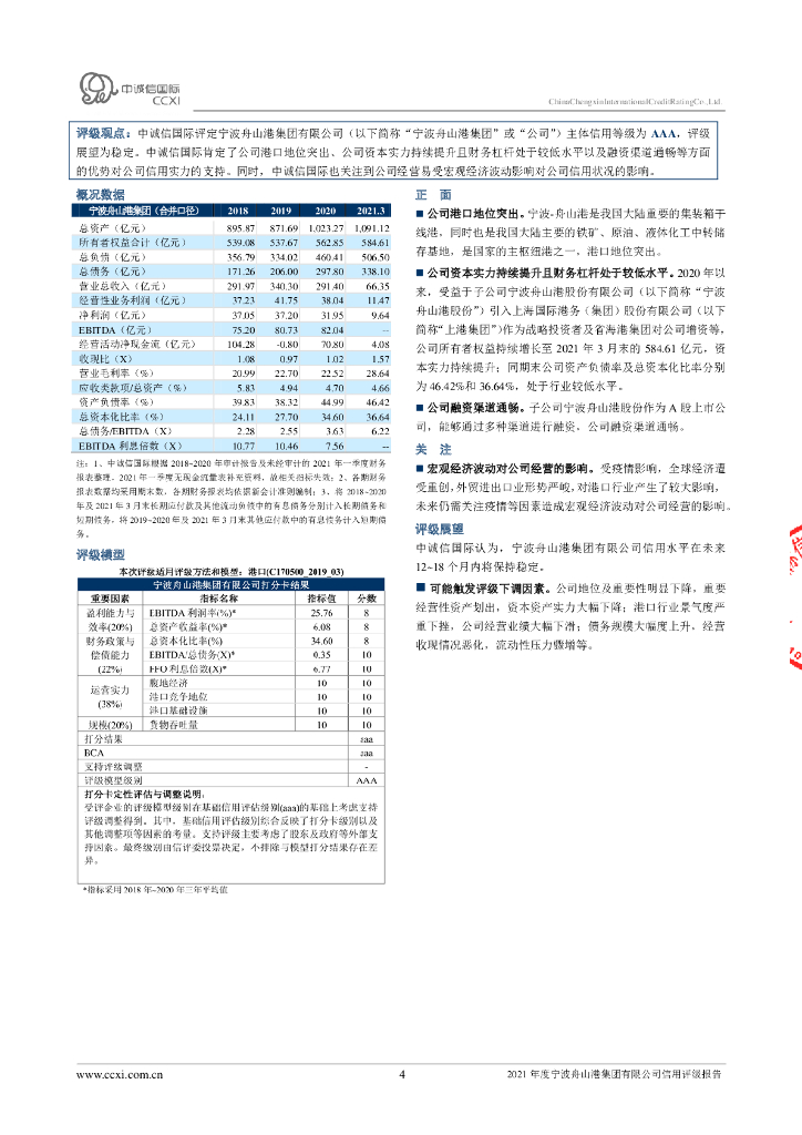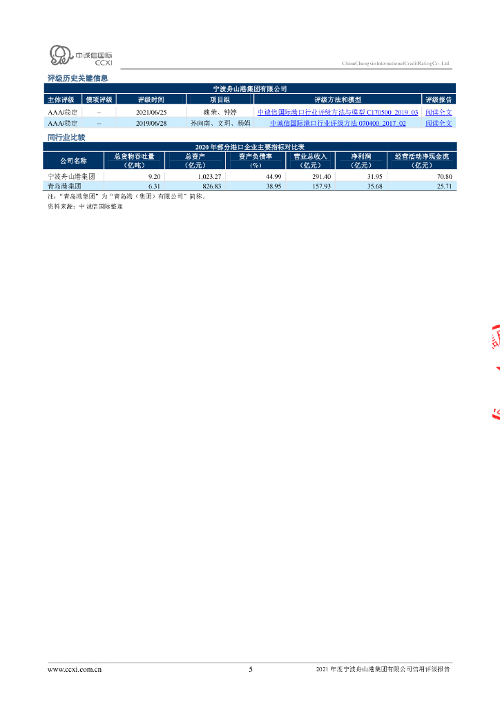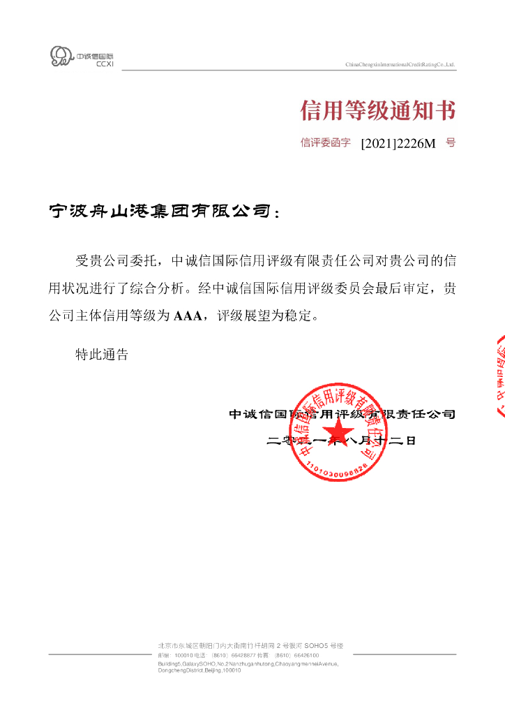 中诚信:宁波舟山港集团有限公司2021年度信用评级报告.pdf