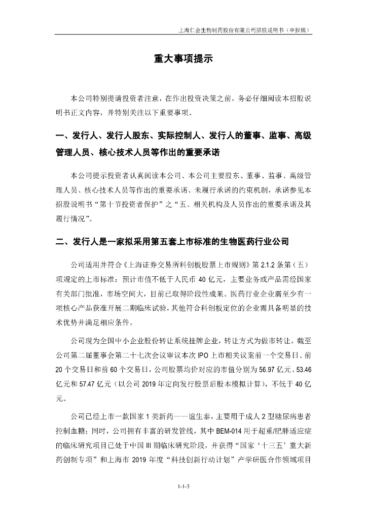上海仁会生物制药股份有限公司上交所科创板IPO上市招股说明书.pdf