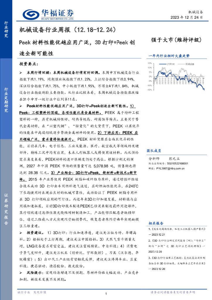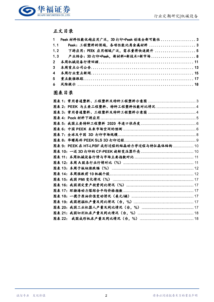 华福证券:机械设备行业周报:Peek材料性能优越应用广泛,3D打印+Peek创造全新可能性.pdf