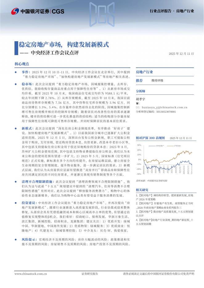 中国银河:房地产行业:中央经济工作会议点评-稳定房地产市场,构建发展新模式.pdf