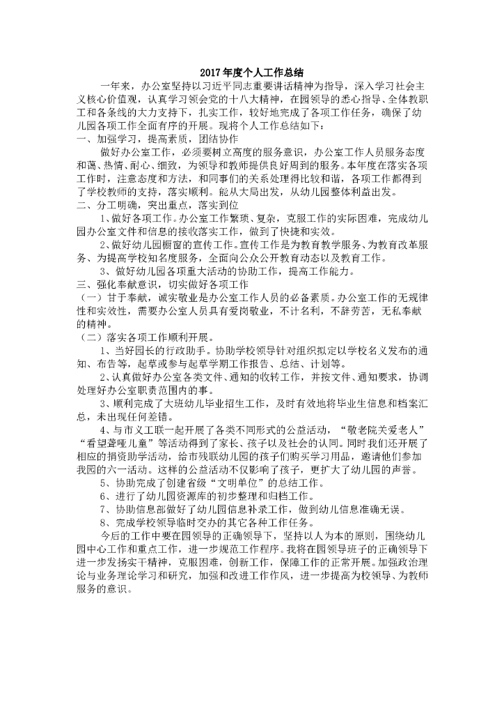 2017年度个人工作总结——办公室工作.doc