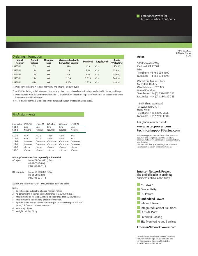 EMERSON NETWORK POWER - Rev. 02.05.07 LPS50-M Series 数据手册.pdf