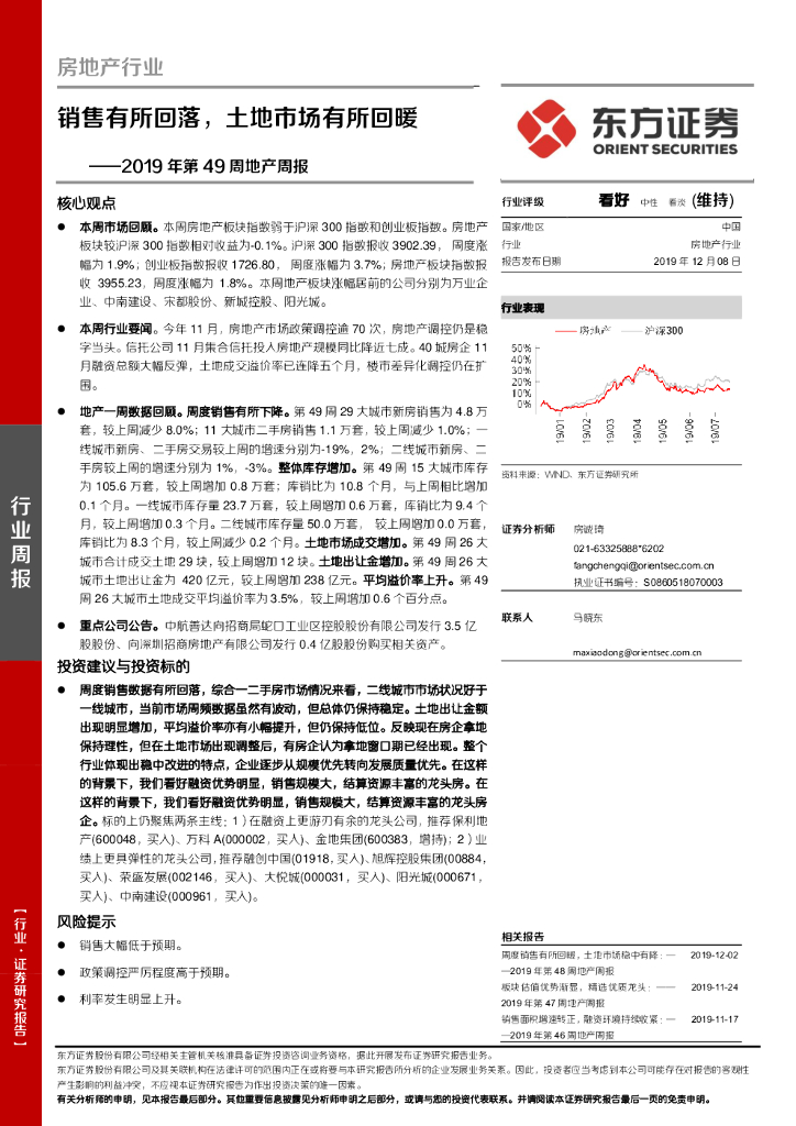 东方证券:房地产行业2019年第49周地产周报:销售有所回落,土地市场有所回暖.pdf
