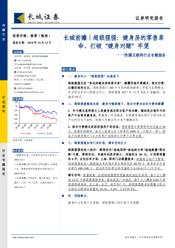 长城证券:超级猩猩——健身房的零售革命,打破健身对赌牢笼.pdf