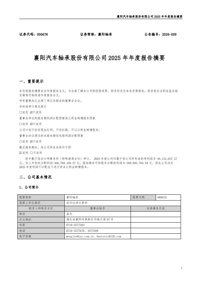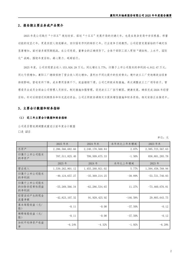 000678-襄阳轴承:2025年年度报告摘要.pdf