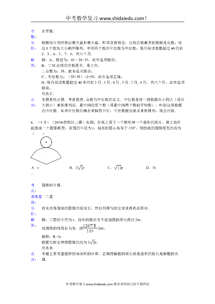 拱墅区中考数学二模试卷附答案解析点评.doc