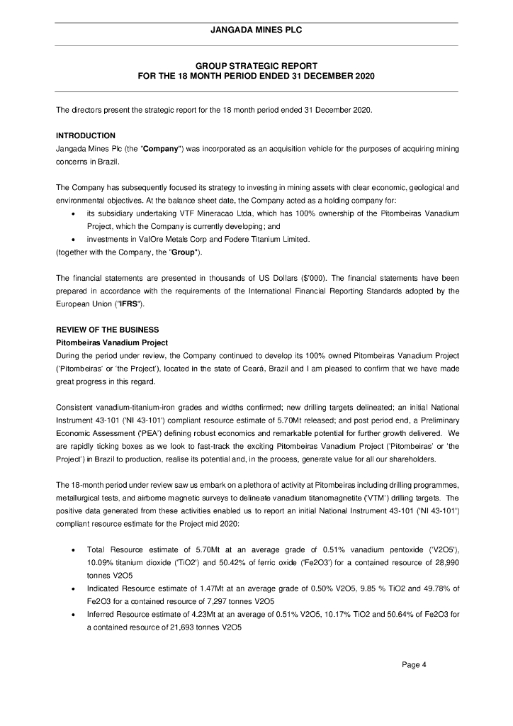 Jangada Mines Plc(JAN)2020财年年度报告(英文版).pdf