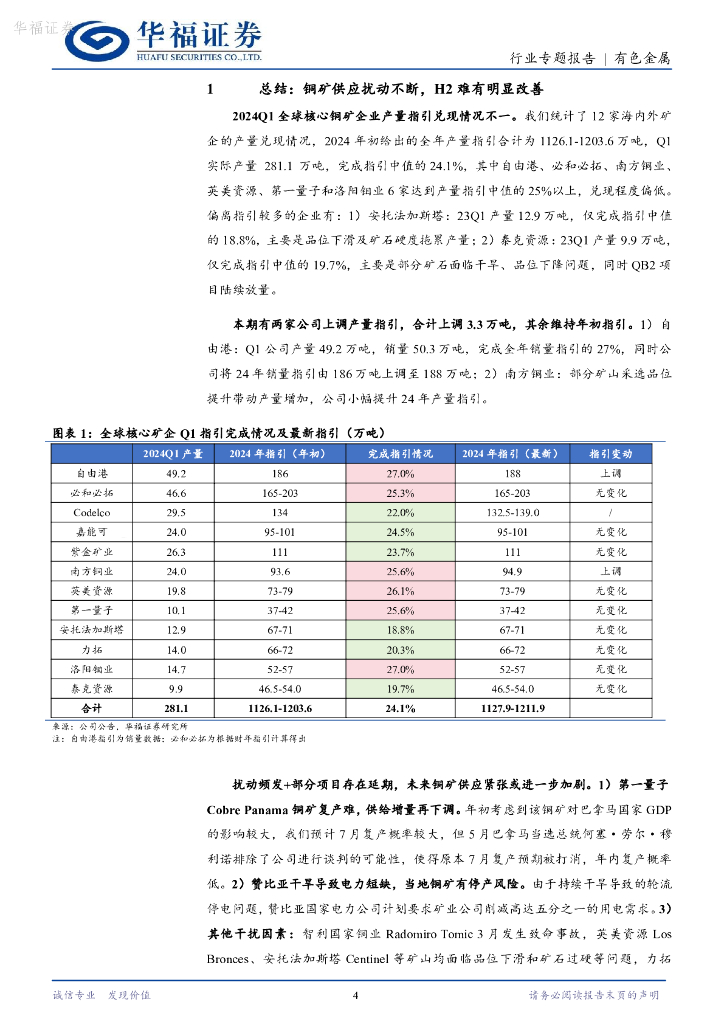 华福证券:有色金属行业2024Q1全球核心矿企跟踪:铜矿供应扰动不断,H2难有明显改善.pdf