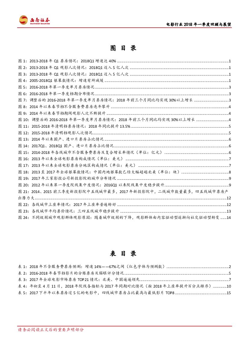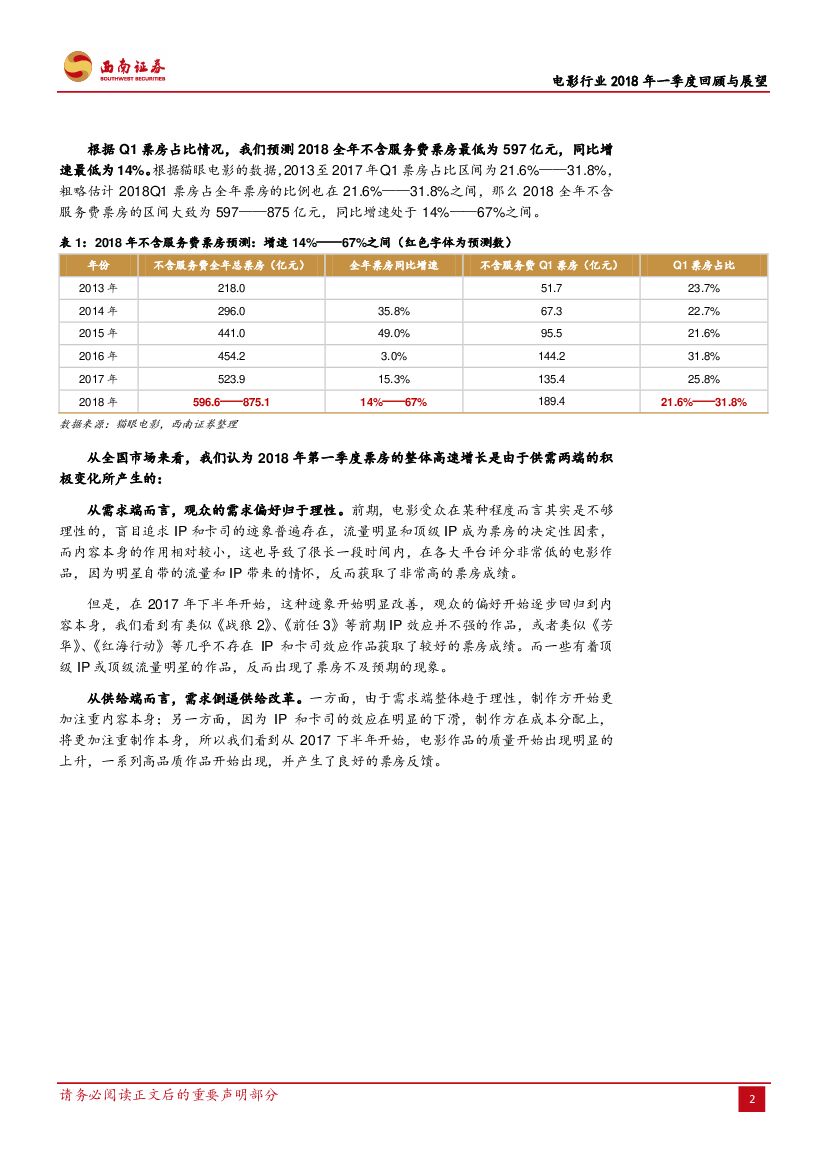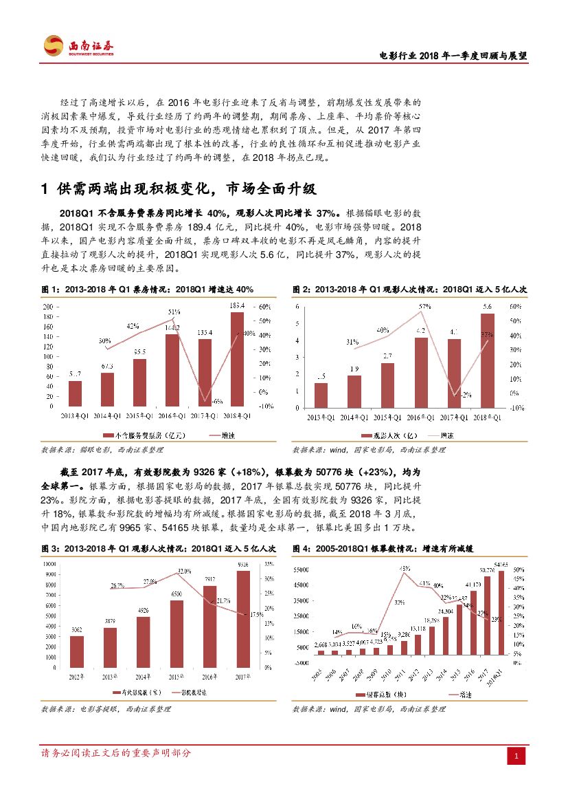 西南证券:电影行业2018年一季度回顾与展望:行业整体边际改善,电影行业拐点已现.pdf