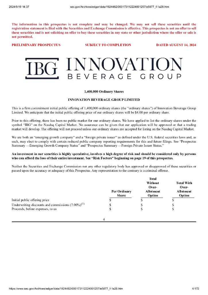 Innovation Beverage Group Limited美股纳斯达克IPO上市招股说明书.pdf