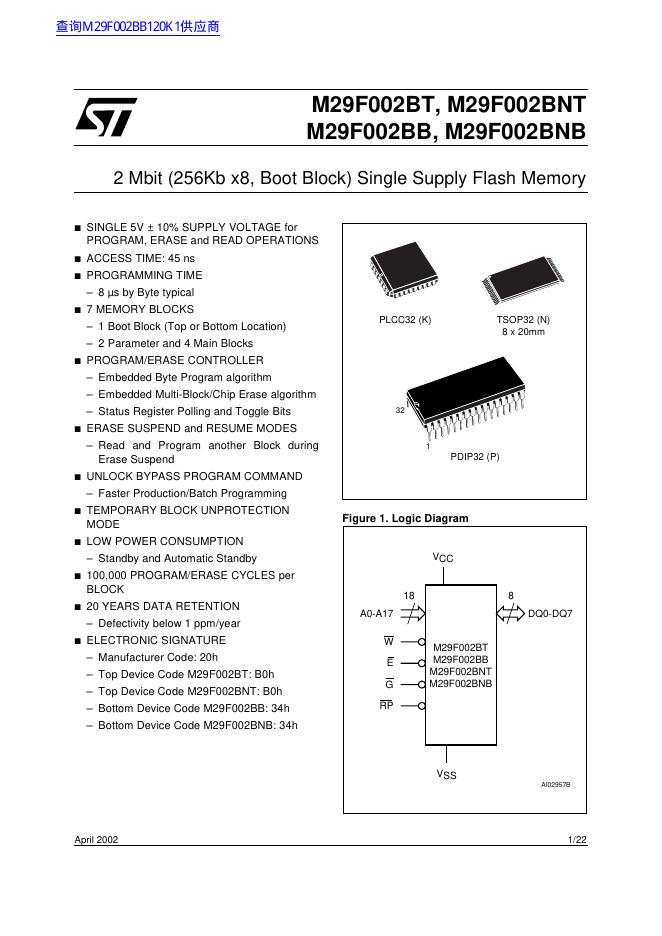 ST M29F002BT, M29F002BNT, M29F002BB, M29F002BNB 数据手册.pdf