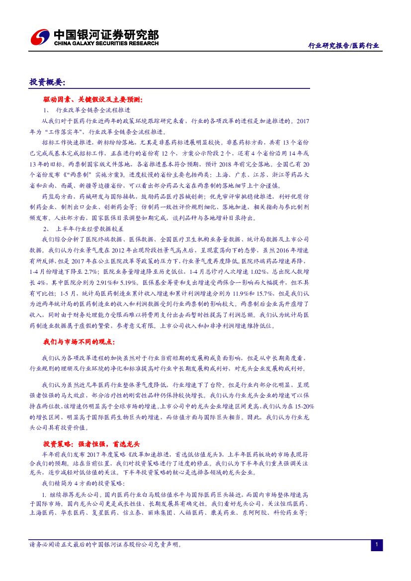 中国银河:医药行业2017年下半年投资策略:强者恒强,首选龙头.pdf