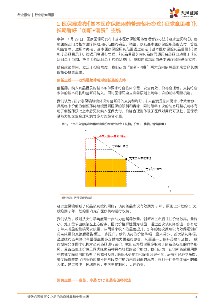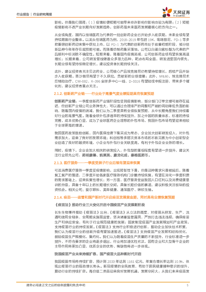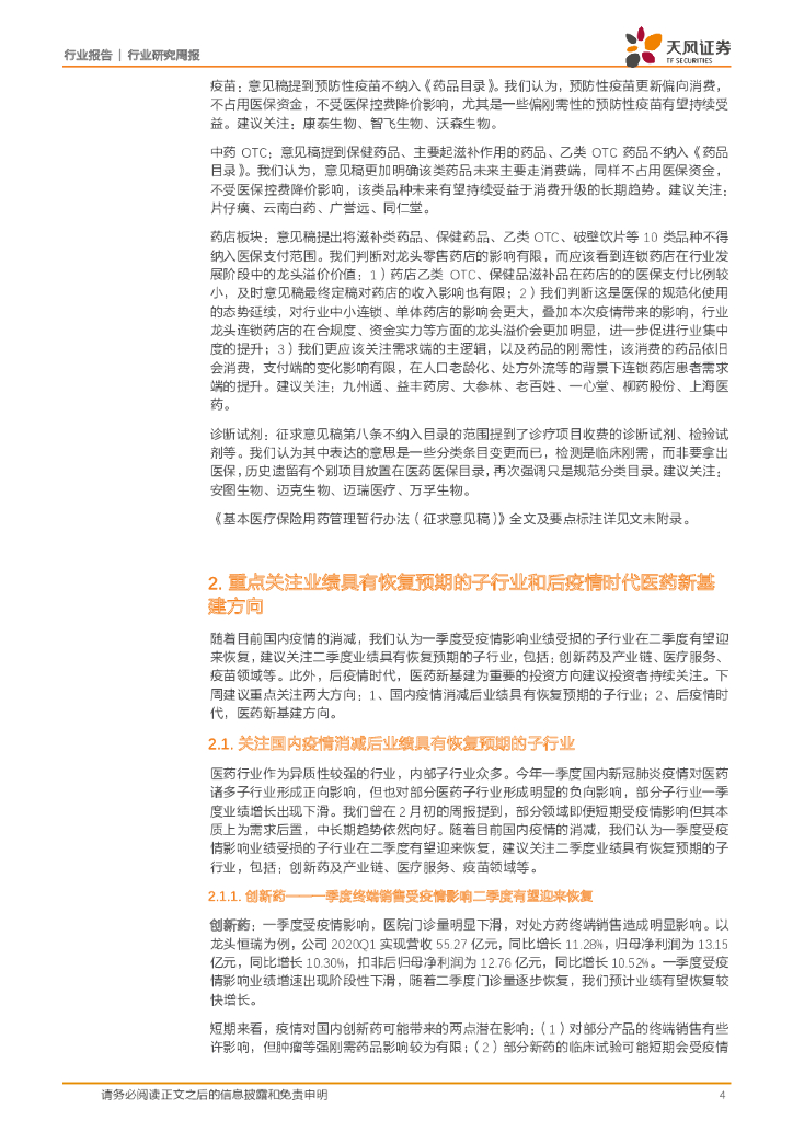 天风证券:医药生物行业研究周报:重点关注业绩恢复预期子行业和后疫情时代医药新基建-兼论医保用药管理办法,看好“创新+消费”长期主线.pdf
