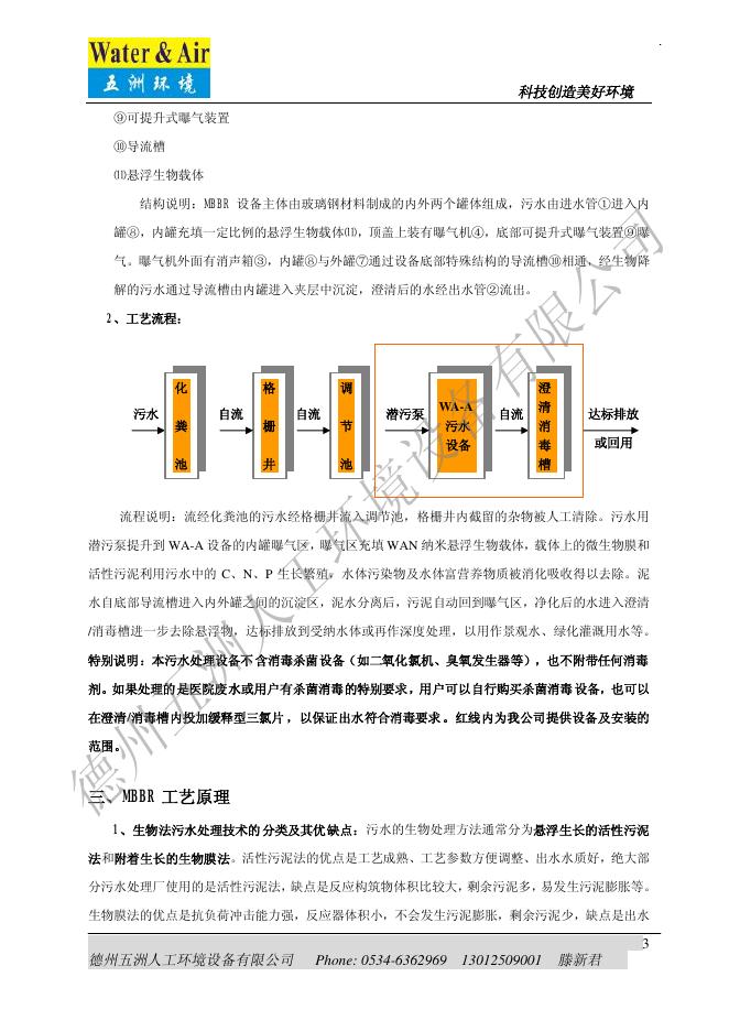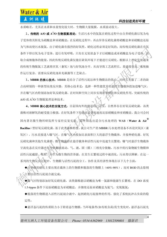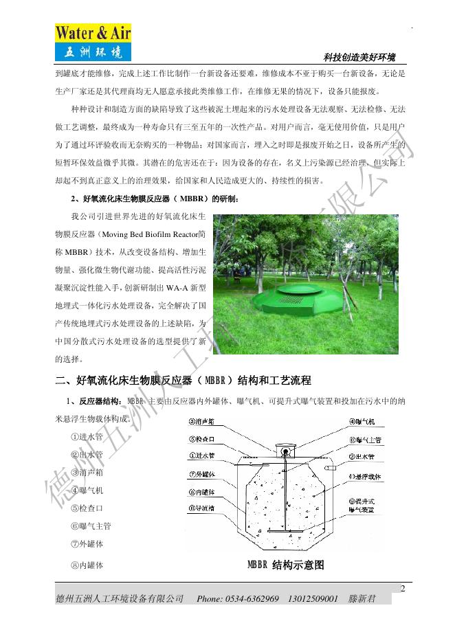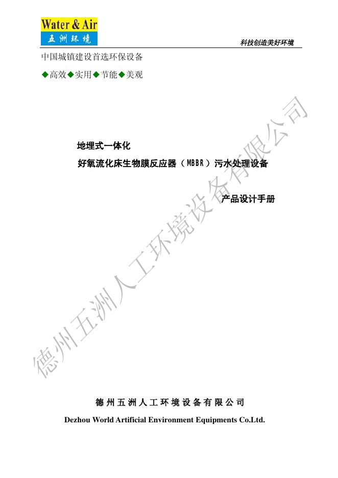 德州五洲人工环境设备有限公司 地埋式一体化 好氧流化床生物膜反应器(MBBR)污水处理设备.pdf