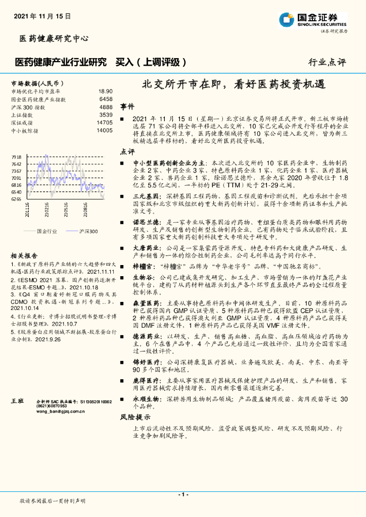 国金证券:医药健康产业行业研究:北交所开市在即,看好医药投资机遇.pdf