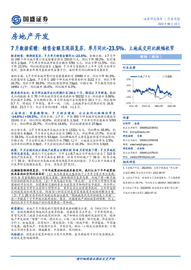 国盛证券:房地产开发7月数据前瞻:销售金额呈现弱复苏,单月同比-23.5%,土地成交同比跌幅收窄.pdf