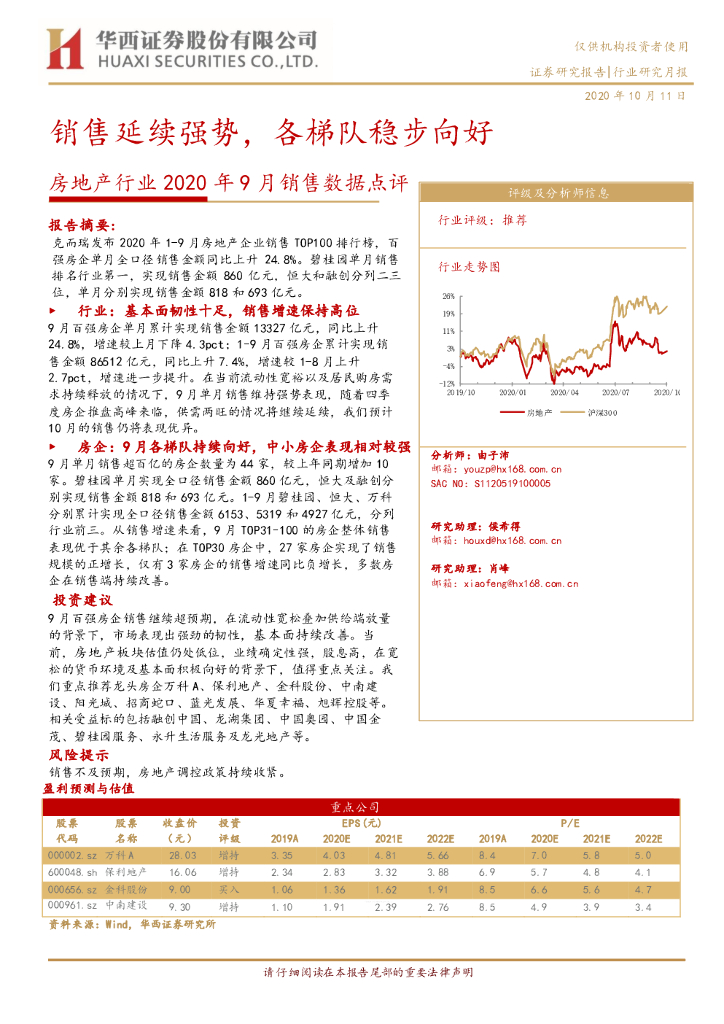 华西证券:房地产行业2020年9月销售数据点评:销售延续强势,各梯队稳步向好.pdf