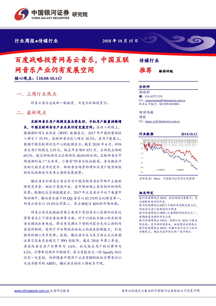 中国银河:传媒行业周报:百度战略投资网易云音乐,中国互联网音乐产业仍有发展空间.pdf