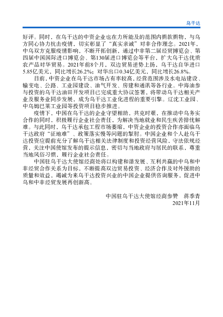 商务部:对外投资合作国别(地区)指南:乌干达(2021年版).pdf