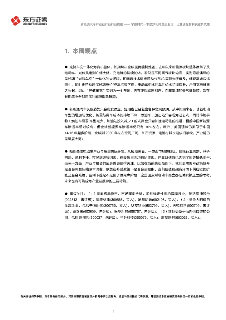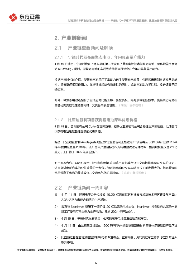 东方证券:新能源汽车产业链行业周报:宁德时代一季度净利同增超五倍,比亚迪在智利获锂价优惠.pdf