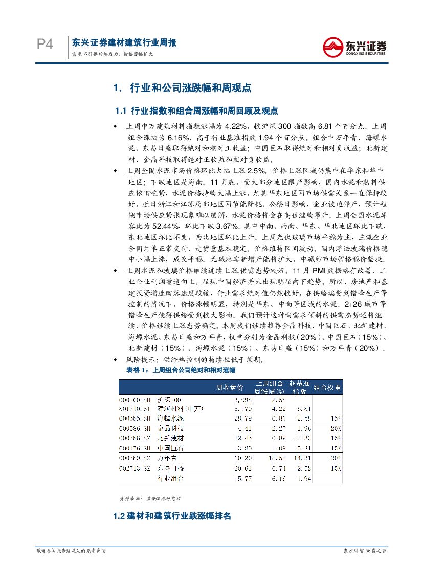 东兴证券:建材建筑行业周报:需求不弱供给端发力,价格涨幅扩大.pdf