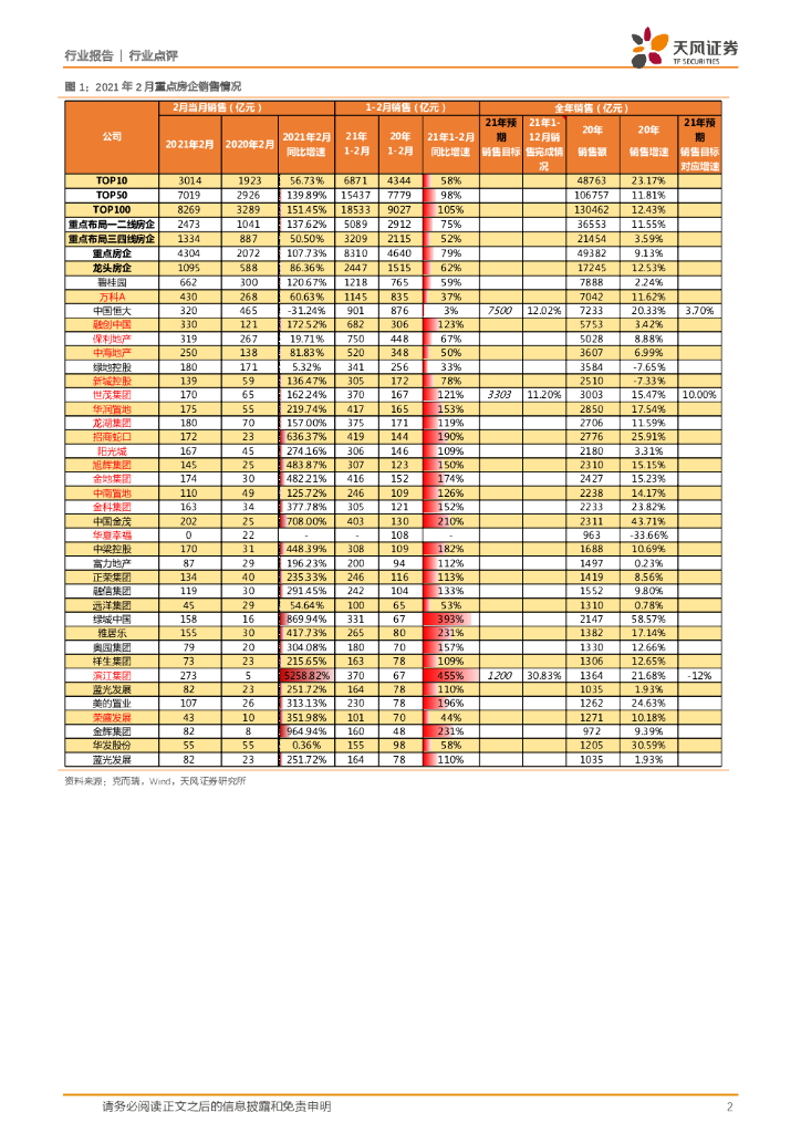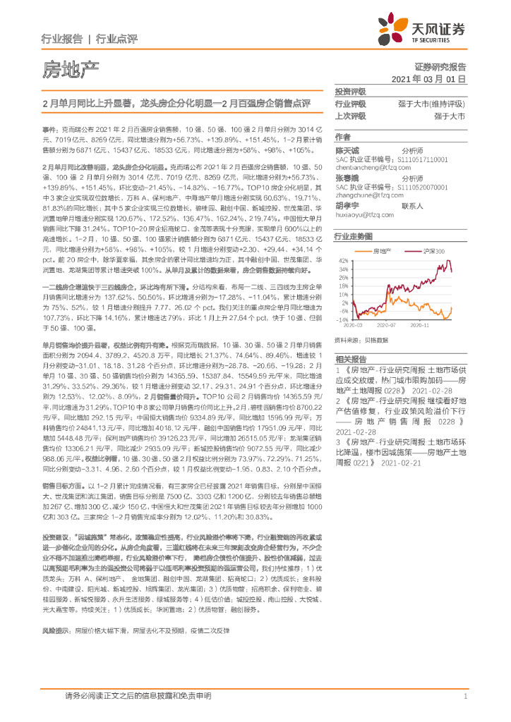 天风证券:房地产:2月百强房企销售点评-2月单月同比上升显著,龙头房企分化明显.pdf