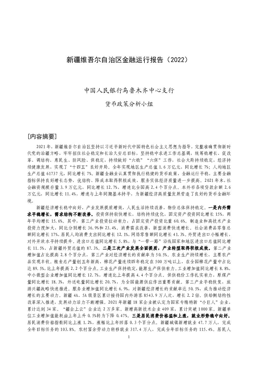中国人民银行:新疆维吾尔自治区金融运行报告(2022).pdf