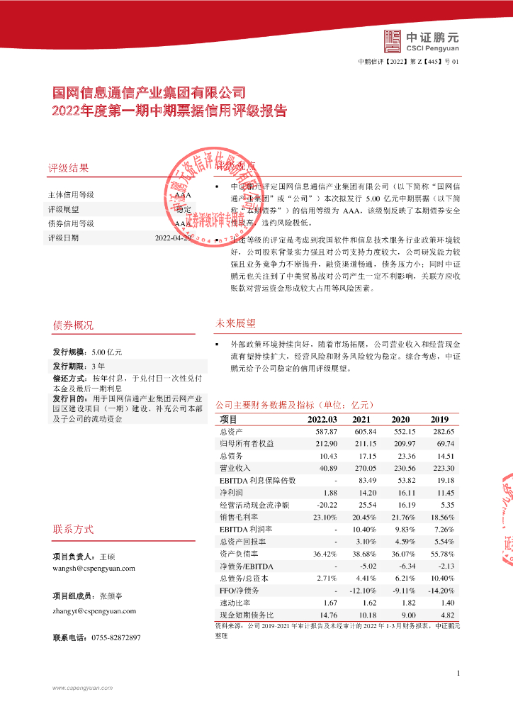 鹏元:国网信息通信产业集团有限公司2022年度第一期中期票据信用评级报告.pdf