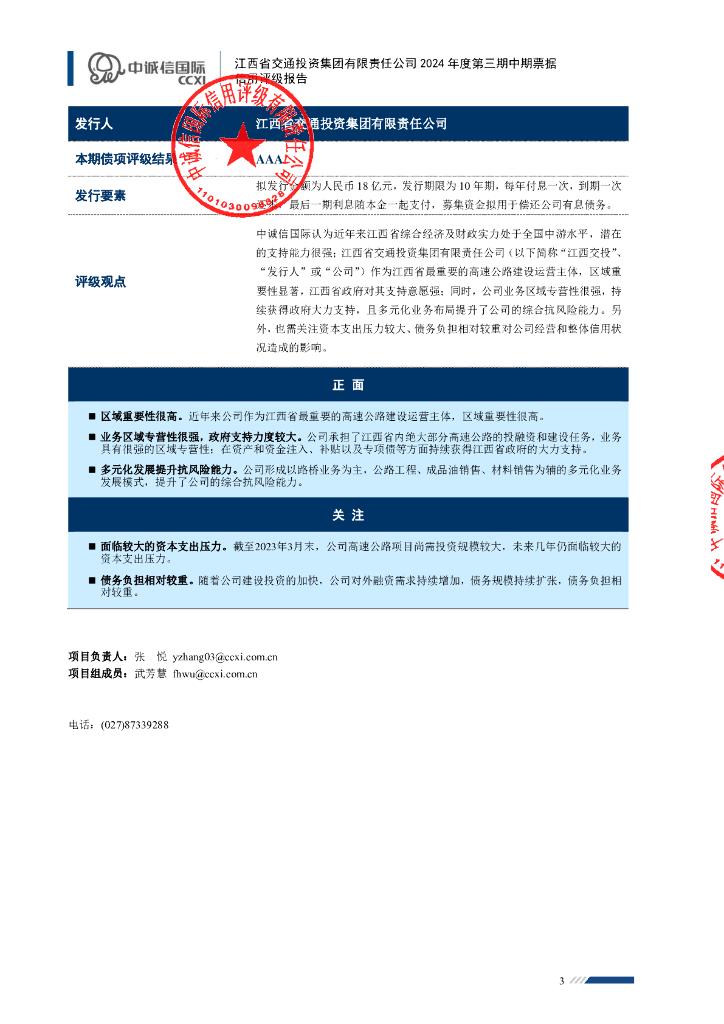 中诚信:江西省交通投资集团有限责任公司2024年度第三期中期票据信用评级报告.pdf