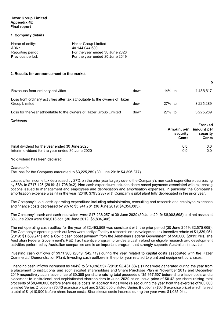 Hazer Group(HZR)2020财年年度报告(英文版).pdf