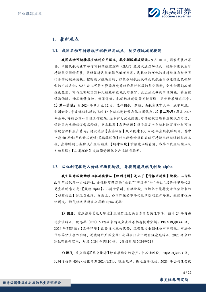东吴证券:环保行业跟踪周报:我国启动可持续航空燃料应用试点,寻找固废及燃气板块alpha.pdf