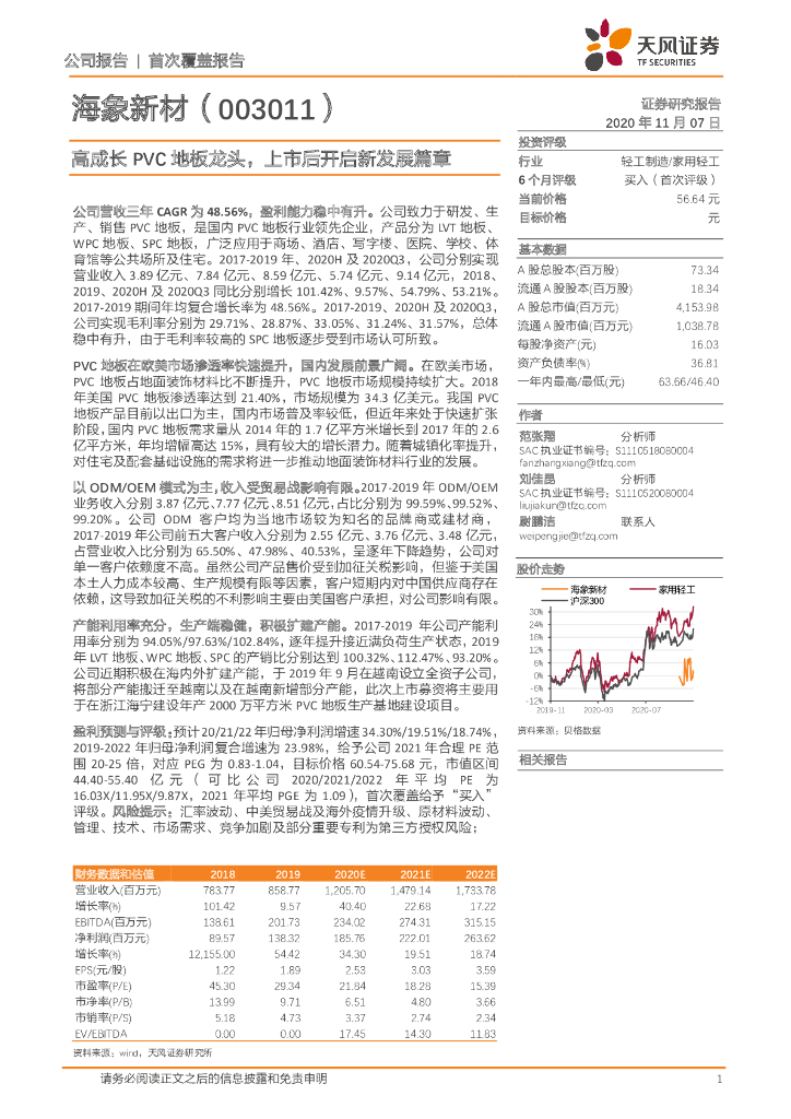 天风证券:海象新材(003011)-高成长PVC地板龙头,上市后开启新发展篇章.pdf
