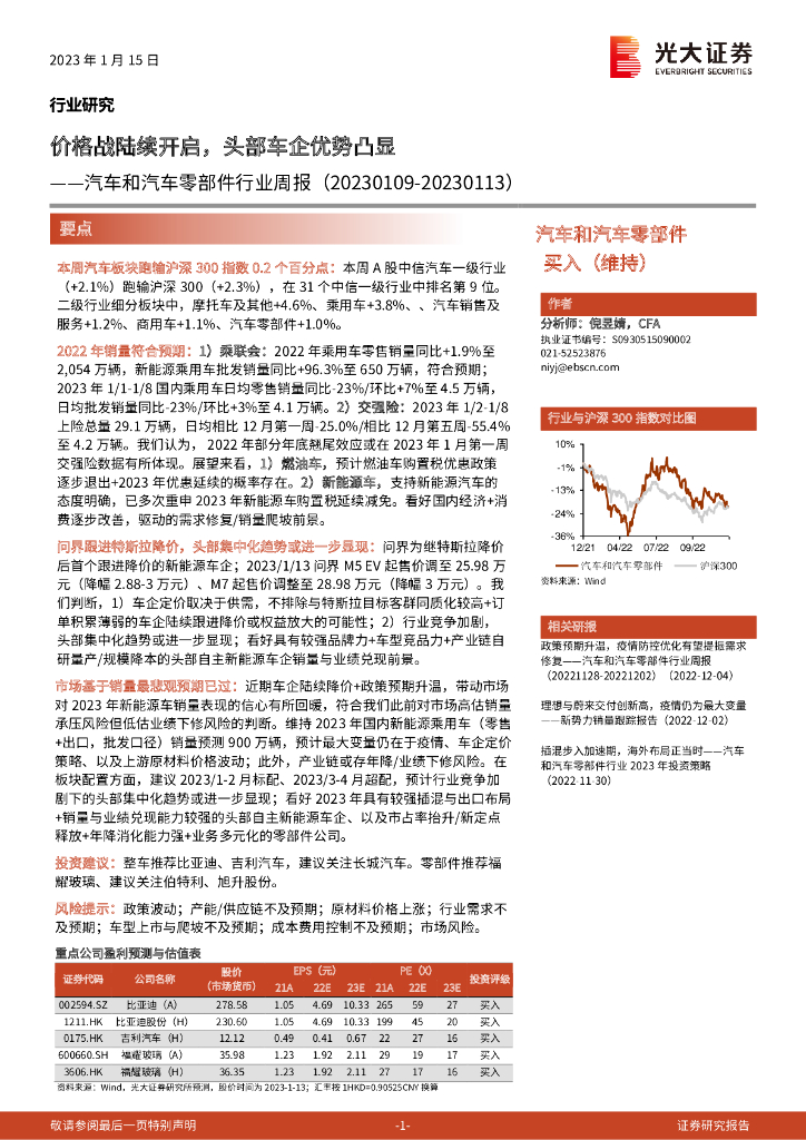 光大证券:汽车和汽车零部件行业周报:价格战陆续开启,头部车企优势凸显.pdf